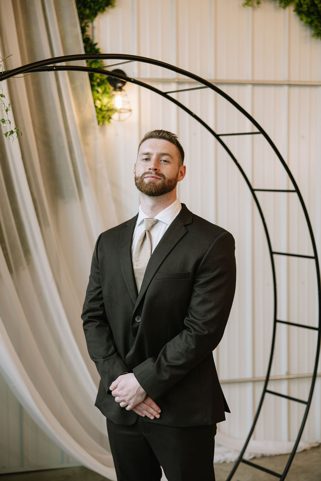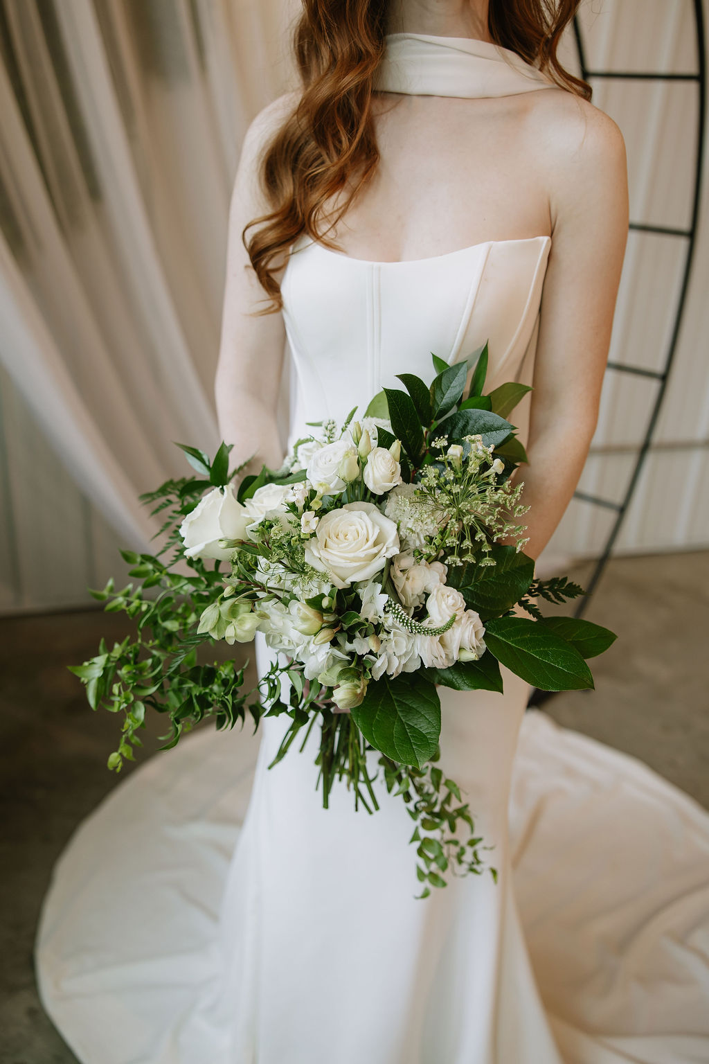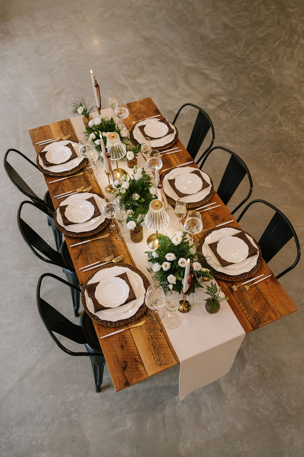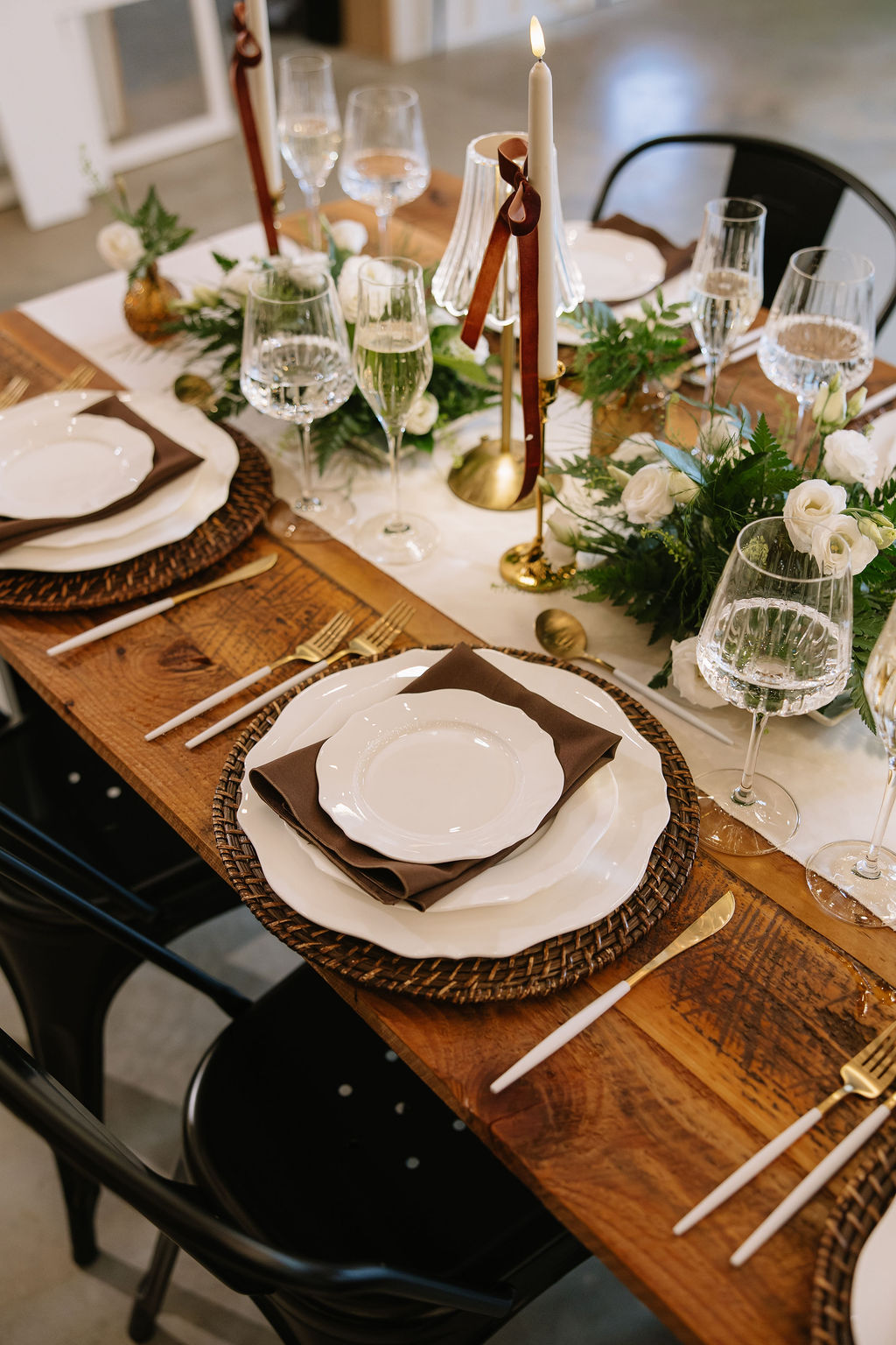 For this shoot, the design leaned into espresso tones, soft neutrals, and greenery.