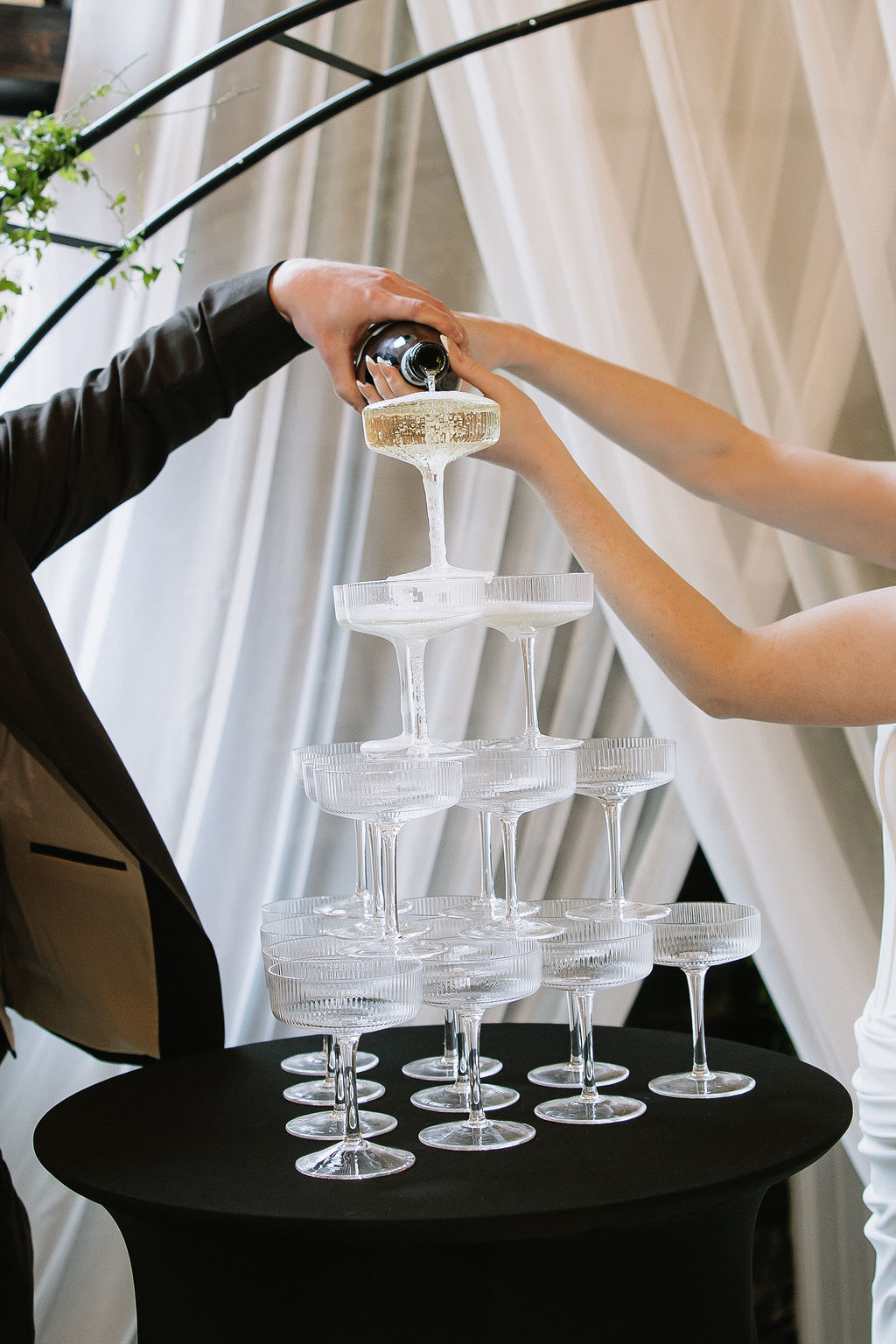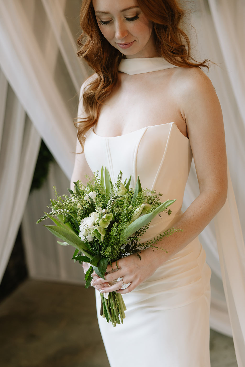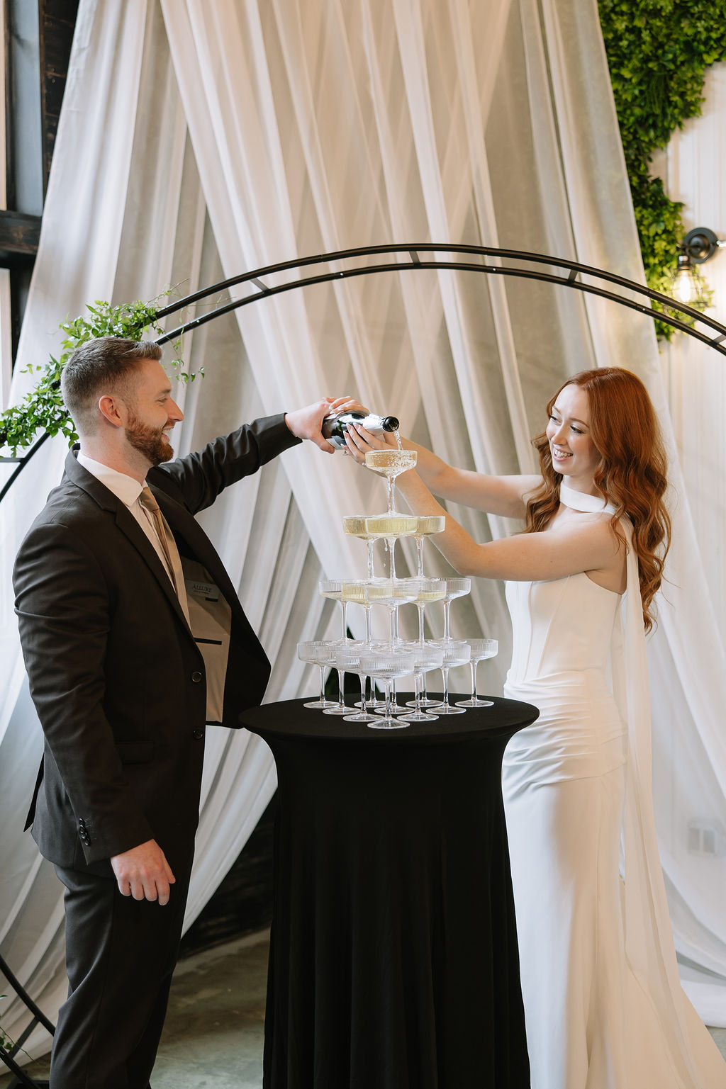 In this shoot, soft drapery and greenery framed the ceremony, while curated rentals brought warmth and cohesion to the reception. The result felt intentional, without feeling overdesigned.