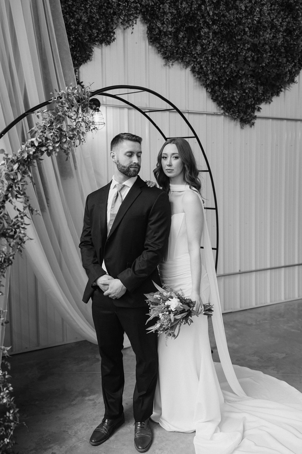 A classic gown and a 90s-inspired vintage cake kept the look timeless, while layered textures added depth without overwhelming the space.